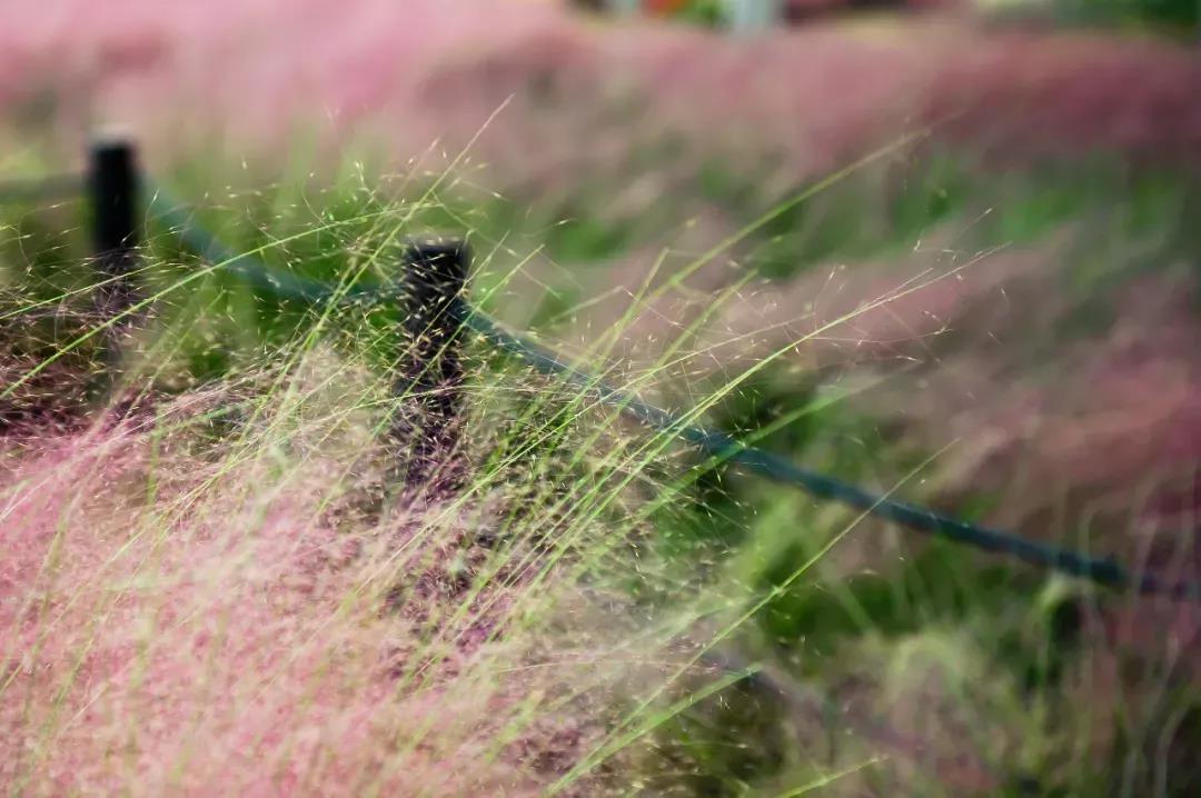 粉黛亂子草開花時(shí),綠葉為底,云霧狀粉色花穗如發(fā)絲從基部長出,隨風(fēng)搖曳,曼妙朦朧,如夢(mèng)似幻,觀賞效果極佳,吸引眾多游客徜徉其中。